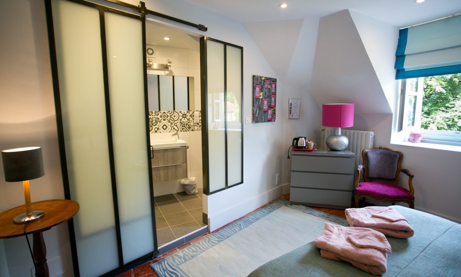 Chambre pour 2 personnes au rez-de-chaussée. Accès PMR.